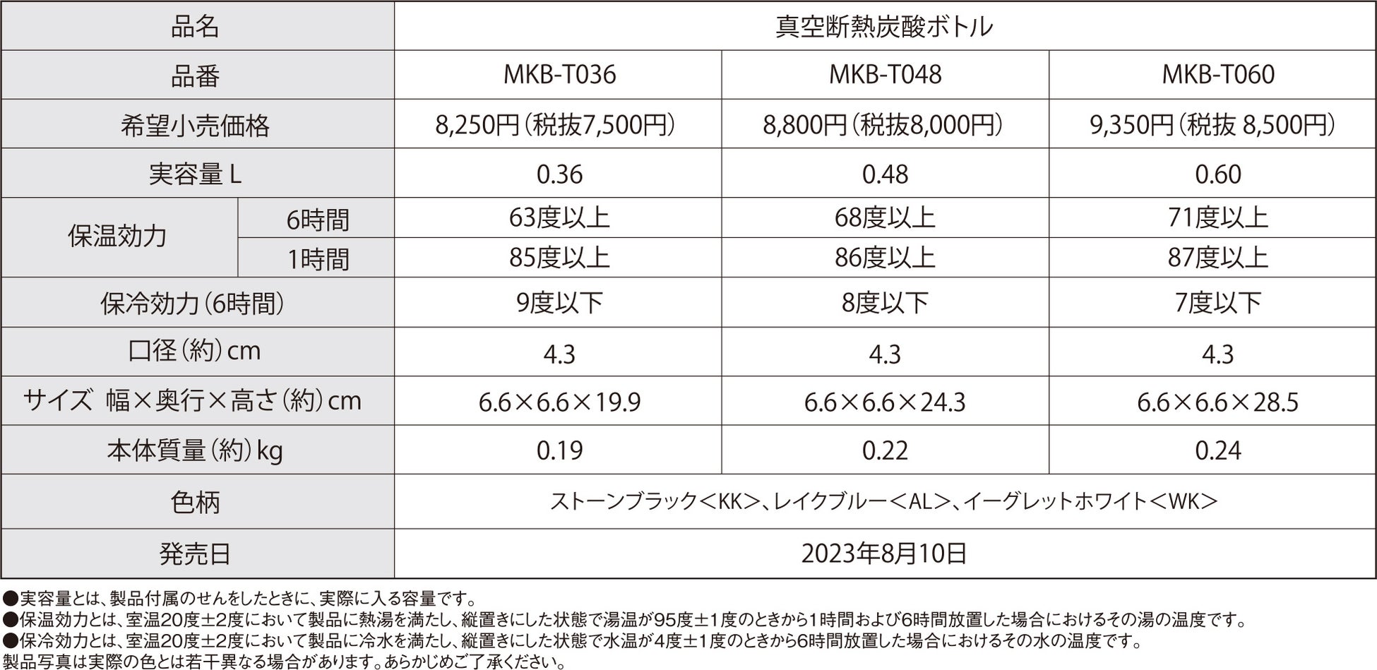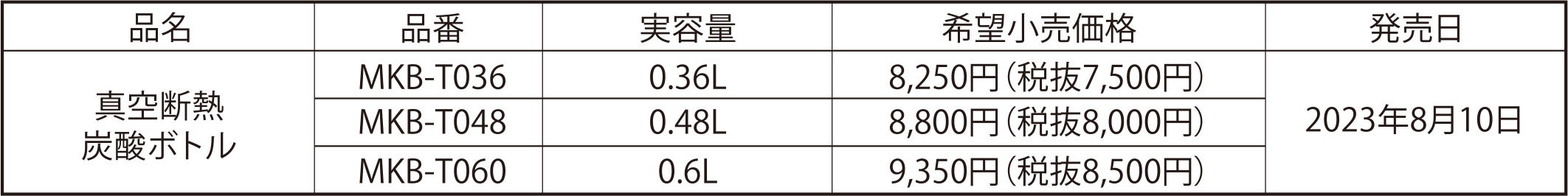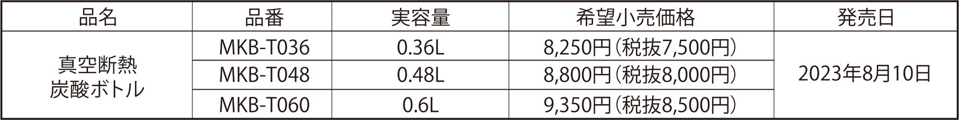 真空断熱炭酸ボトル MKB-T036/T048/T060 2023年8月10日発売