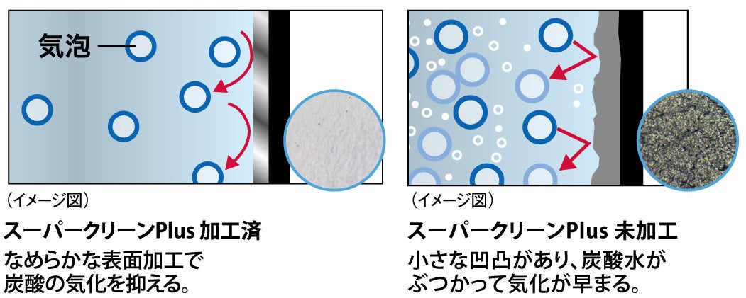 炭酸の気化をおさえ、汚れやにおいがつきにくい「スーパークリーンPlus」