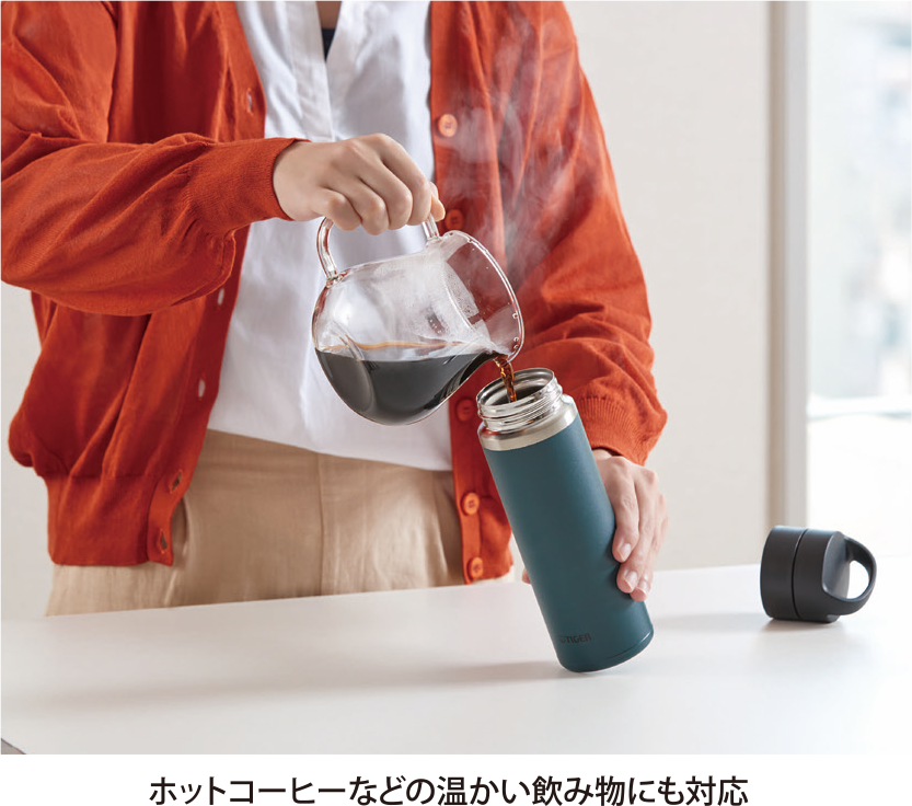 新発売となる「真空断熱炭酸ボトル MKB-T036/T048/T060」は、飲み口形状を変更することで、新たに保温にも対応できることになりました。暑い夏は冷たいドリンクやビール、ハイボール※を、寒い冬はホットコーヒーなどの温かいドリンクを入れて、年中ご愛用いただけます。