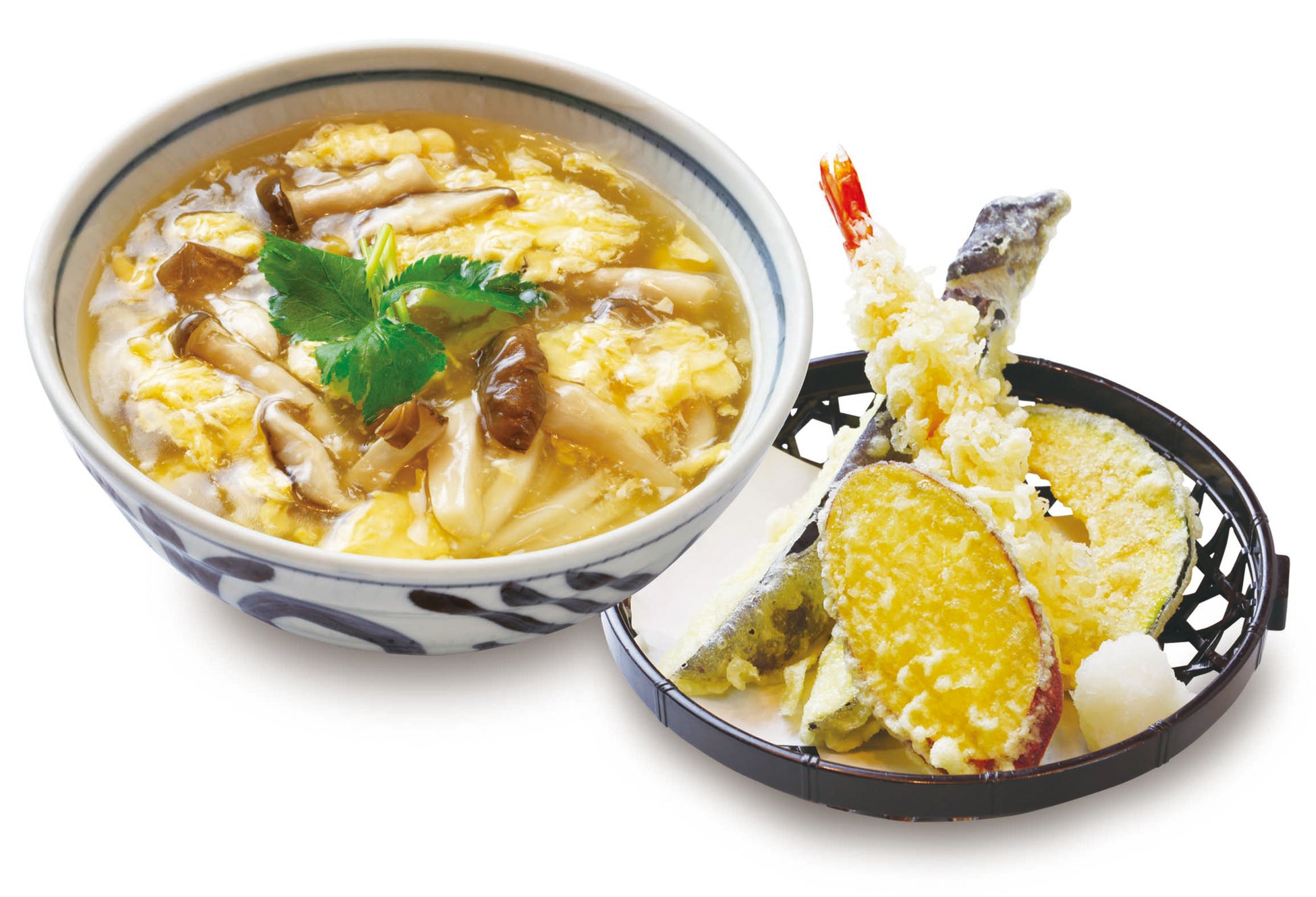 ■ 秋野菜の天ぷらときのこのあんかけ卵とじうどん
