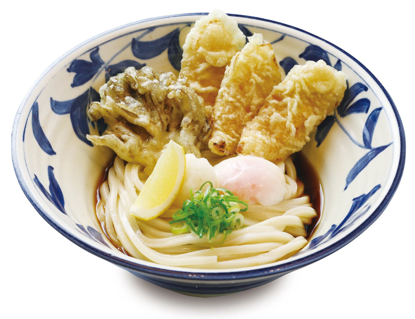 讃岐うどんならではの腰とのど越しを存分にご堪能頂けるぶっかけうどんに海老天、半熟卵天など人気の天ぷらをトッピングしたメニューです。