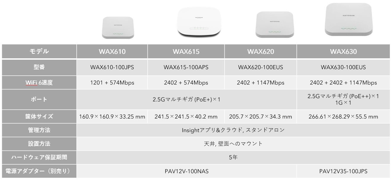 - 製品ページ:https://www.netgear.com/jp/business/wifi/access-points/wax615/