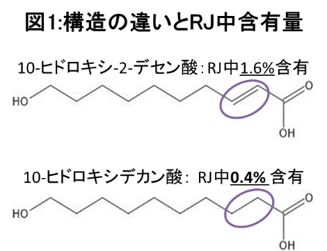 腸管免疫において、ローヤルゼリーがM細胞の分化を誘導すること、またその主な活性成分はローヤルゼリー中のデカン酸であることが明らかとなっている。しかし、デカン酸はローヤルゼリー中の含有量が約0.4%と極めて少ない。一方で、デセン酸はローヤルゼリー中に約1.6%含まれており、デカン酸とデセン酸の構造の違いは二重結合の有無のみである。