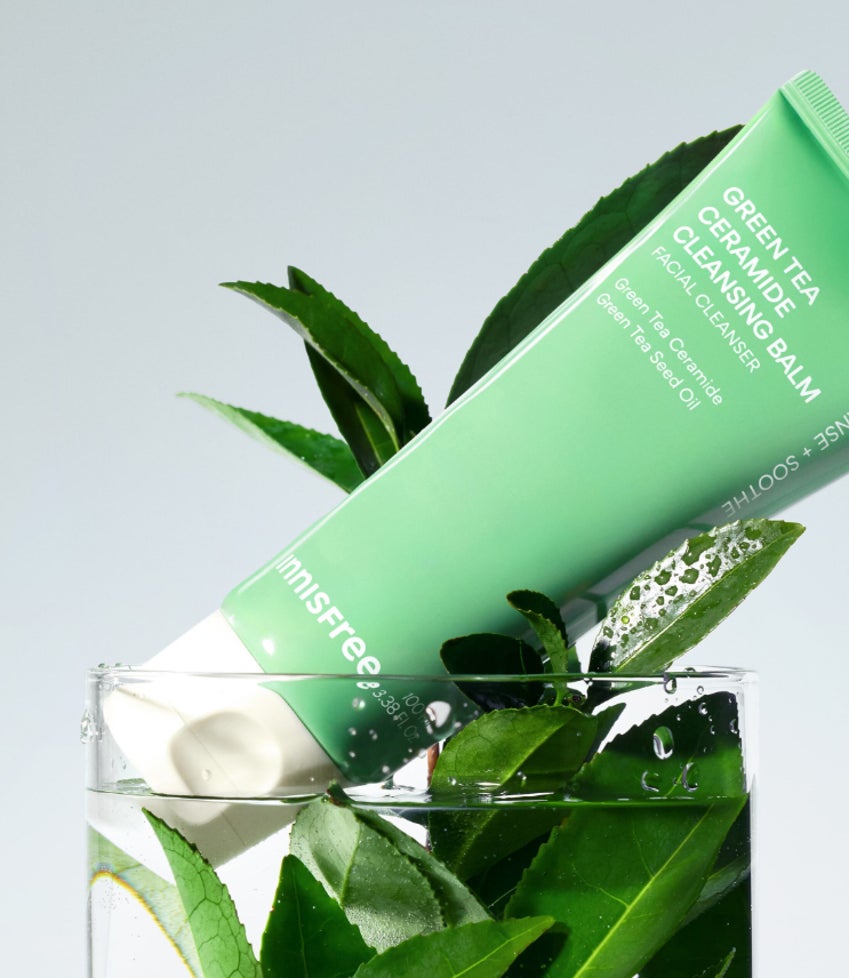 洗浄力と心地よさを両立した『グリーンティー セラミド クレンジングバーム』。イニスフリーならではの緑茶由来成分に着目し、毎日のクレンジングタイムを心地よく、肌に寄り添う設計を目指しました。
