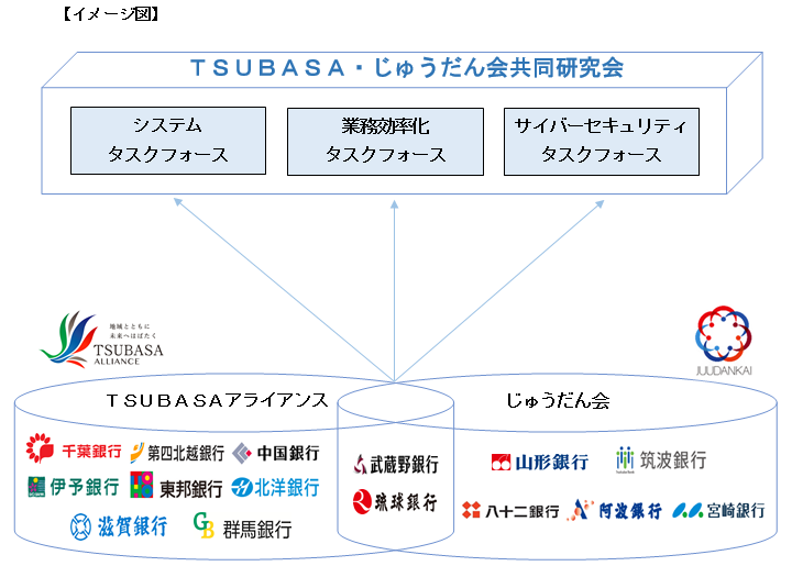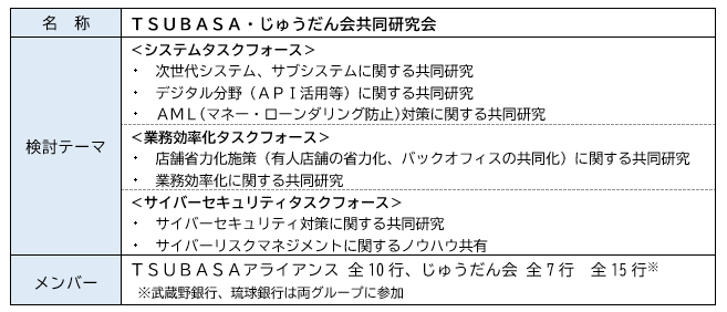 このような環境下において、システム関連で親和性のある両グループが知見・ノウハウを共有し、効率的なシステム運用・業務プロセスの実現を目指すとともに、お客さま向けサービスの高度化、各地域経済の持続的な成長に貢献するため、本研究会を立ち上げることとしました。