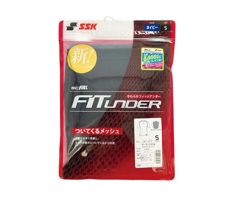 進化した(ついてくるメッシュ)の「SCβFITアンダーシャツ」。吸汗速乾「DRY SPARK」機能と伸縮性の高い2WAY素材でフィット感と柔らかな着心地を実現。背面と脇切替部には、優れた伸縮性と高い通気性が特徴の特殊構造メッシュ素材を採用しました。体の動きに合わせて伸縮することで空気孔(=メッシュ目)が開き、汗をすばやく外に発散。メッシュ目は縦方向と横方向が異なる形状になっており、動作に連動することに加え、かいた汗をすばやく蒸発させる構造を追求しました。不快な肌面のべたつきを抑え、プレーに集中できるアンダーシャツです。