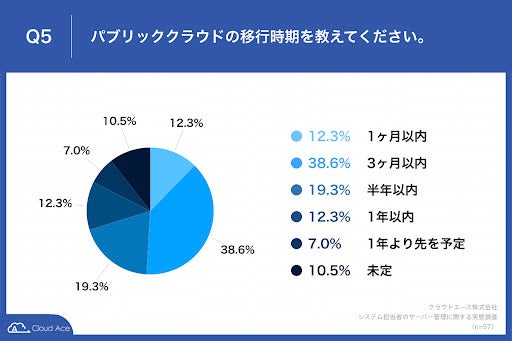 「 1 ヶ月以内」が 12.3% 、「 3 ヶ月以内」が 38.6% という回答となりました。