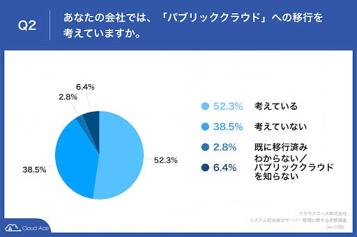 「あなたの会社では、「パブリッククラウド」への移行を考えていますか。」と質問したところ、