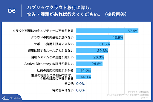 「パブリッククラウド移行に際し、悩み・課題があれば教えてください。」と質問したところ、