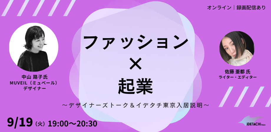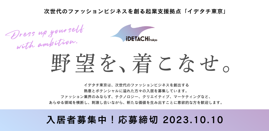 ファッションビジネス×起業「イデタチ東京」入居者募集中 「MUVEIL(ミュベール)」デザイナー中山路子氏が9/19(火)登壇
