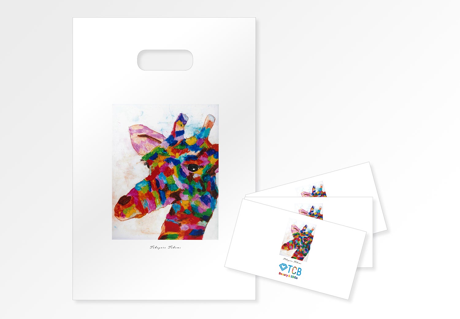 TCBグループでは障がい者の自立を支援し活躍の場を広げるため、昨年6月より「パラアート」事業の支援を開始。 昨年9月の国際交流展ではTCB賞を創設し、色彩豊かなキリンの表情が活き活きと描かれた「チャーミングなキリン(作者:武安 拓実さん)」に授与しました。同作品はTCBのクリニックで使用されるオリジナルショッパーバッグや封筒のデザインにも採用されております。今年もTCB賞を受賞した作品はパラアート活動のさらなる周知のために活用させていただく予定です。