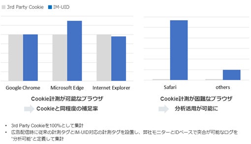 さらに、DMP『di-PiNK』では、IM-UIDを活用することで3rd Party Dataを用いたWebサイト分析や、広告配信が従来どおり継続して行えるようになるだけでなく、iOSを始めとした、これまで計測・広告配信が困難であったデバイスにおいても、効果的かつ効率的にアプローチできるようになり、生活者コミュニケーションを実現したい広告主様、広告会社様のご支援が可能になりました。
