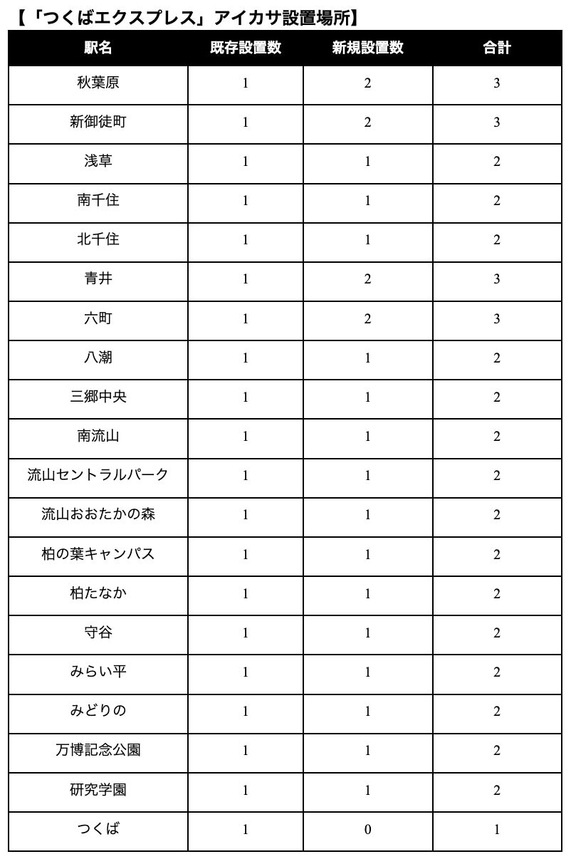 5月22日、つくばエクスプレスでアイカサを23か所に増設!全20駅の43か所でアイカサが利用可能に。