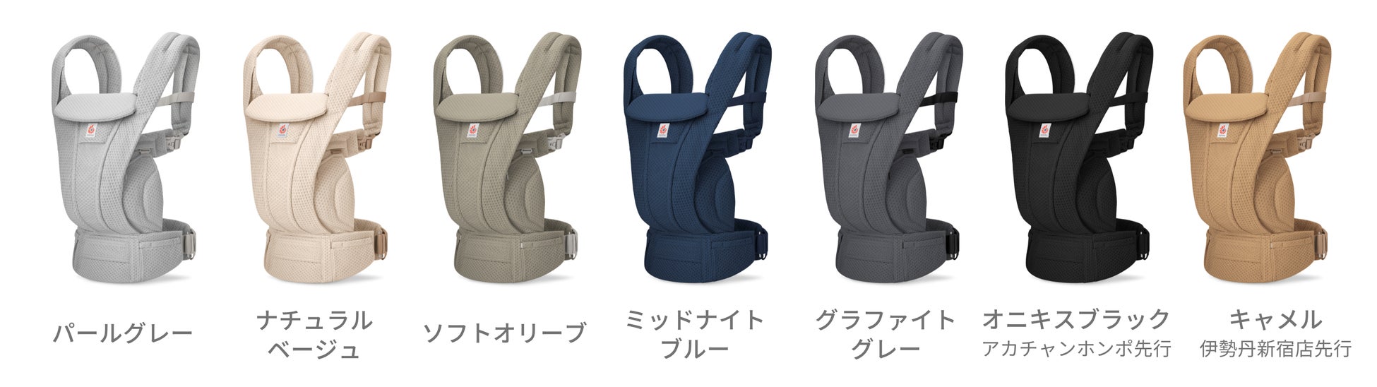 カラー :全7色(パールグレー、ナチュラルベージュ、ソフトオリーブ、ミッドナイトブルー、グラファイトグレー、オニキスブラック※アカチャンホンポ先行発売、キャメル※3月12日より伊勢丹新宿店先行発売・数量限定)