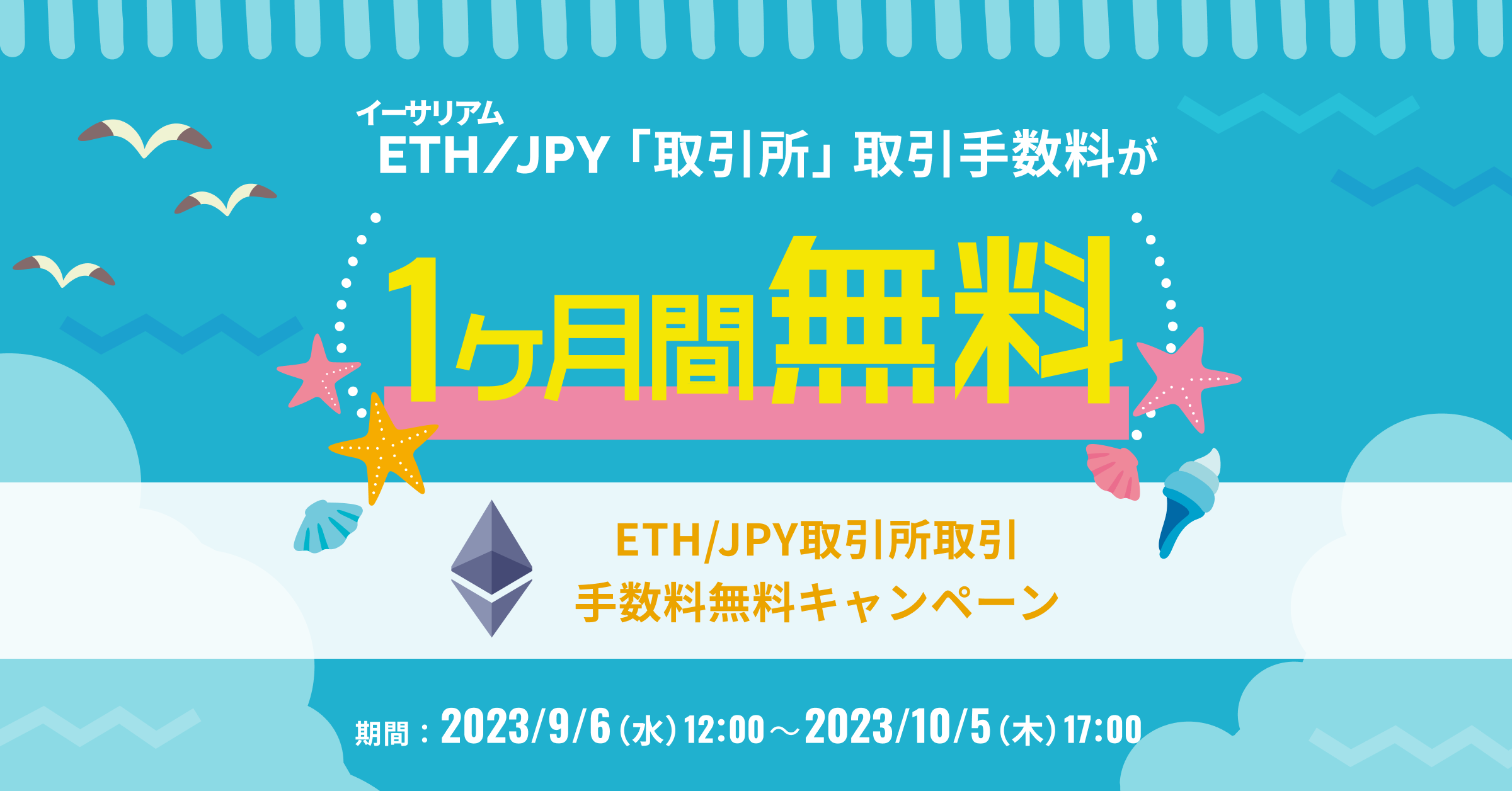 キャンペーン期間中、ETH/JPY取引所取引手数料が無料となります。