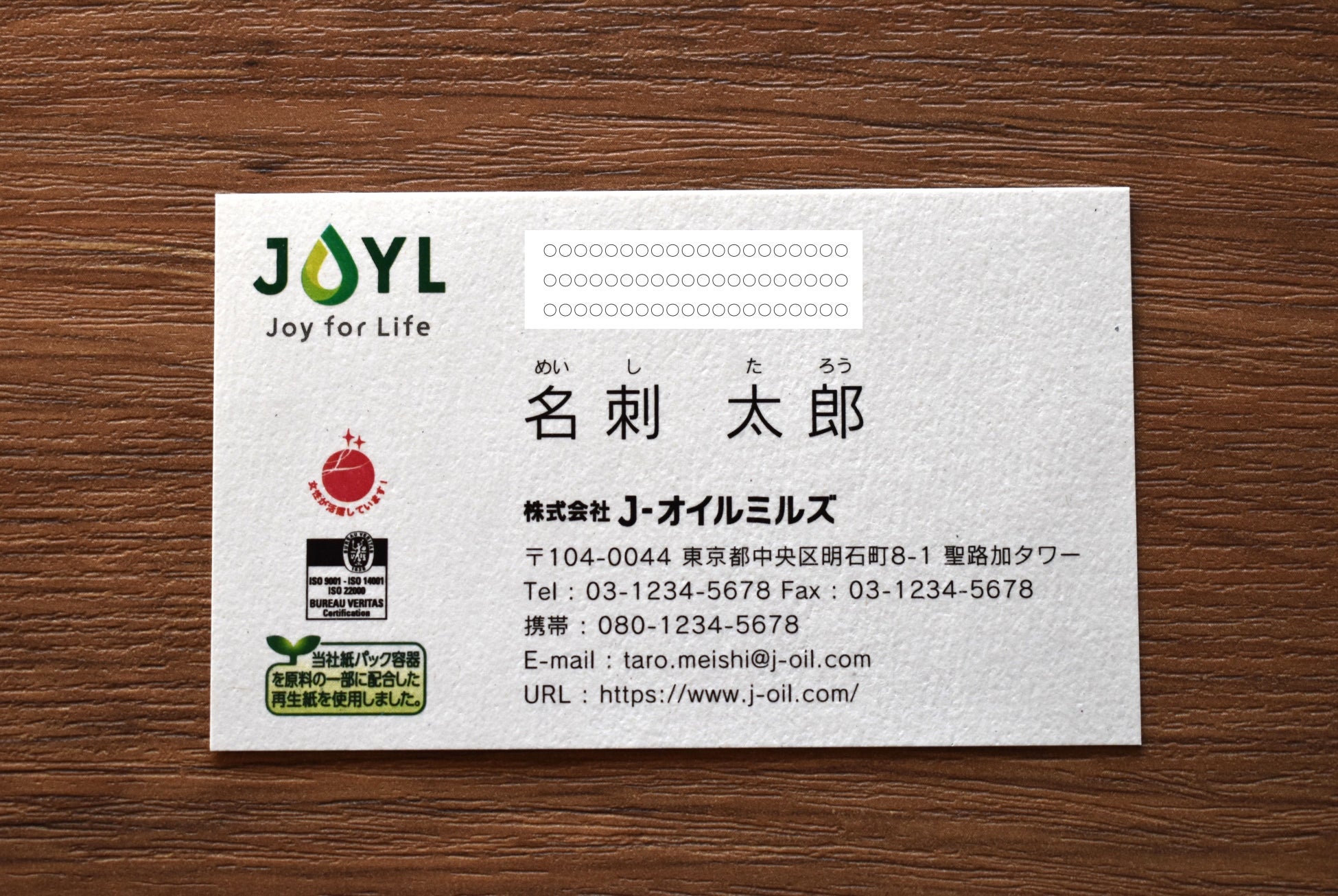 株式会社J-オイルミルズ(東京都中央区、代表取締役社長執行役員 CEO:佐藤 達也 以下当社)は、紙パックの食用油「スマートグリーンパックⓇ」シリーズの生産時に当社工場で発生する廃紙パックを原料の一部として配合した再生紙を、当社の名刺として2024年3月より順次活用することをお知らせします。