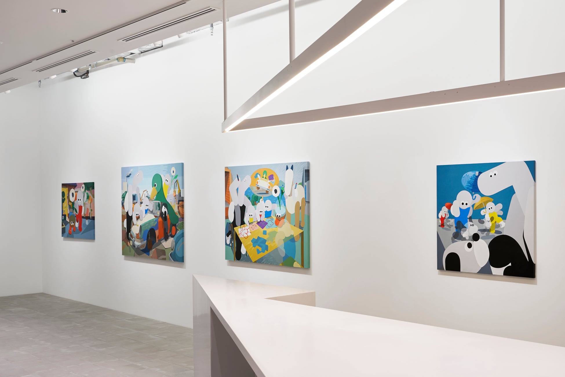キャンバス作品に注力するようになった2020年頃から現在に至るまでも、常に新しい表現方法を模索・発表し続けています。ユニットである二人がそれぞれ構図と色彩感覚を通して行う独自の対話から生み出す作品は、不思議な温かさと共に人々の普遍的な感情をキャンバスに落とし込んでいるようです。