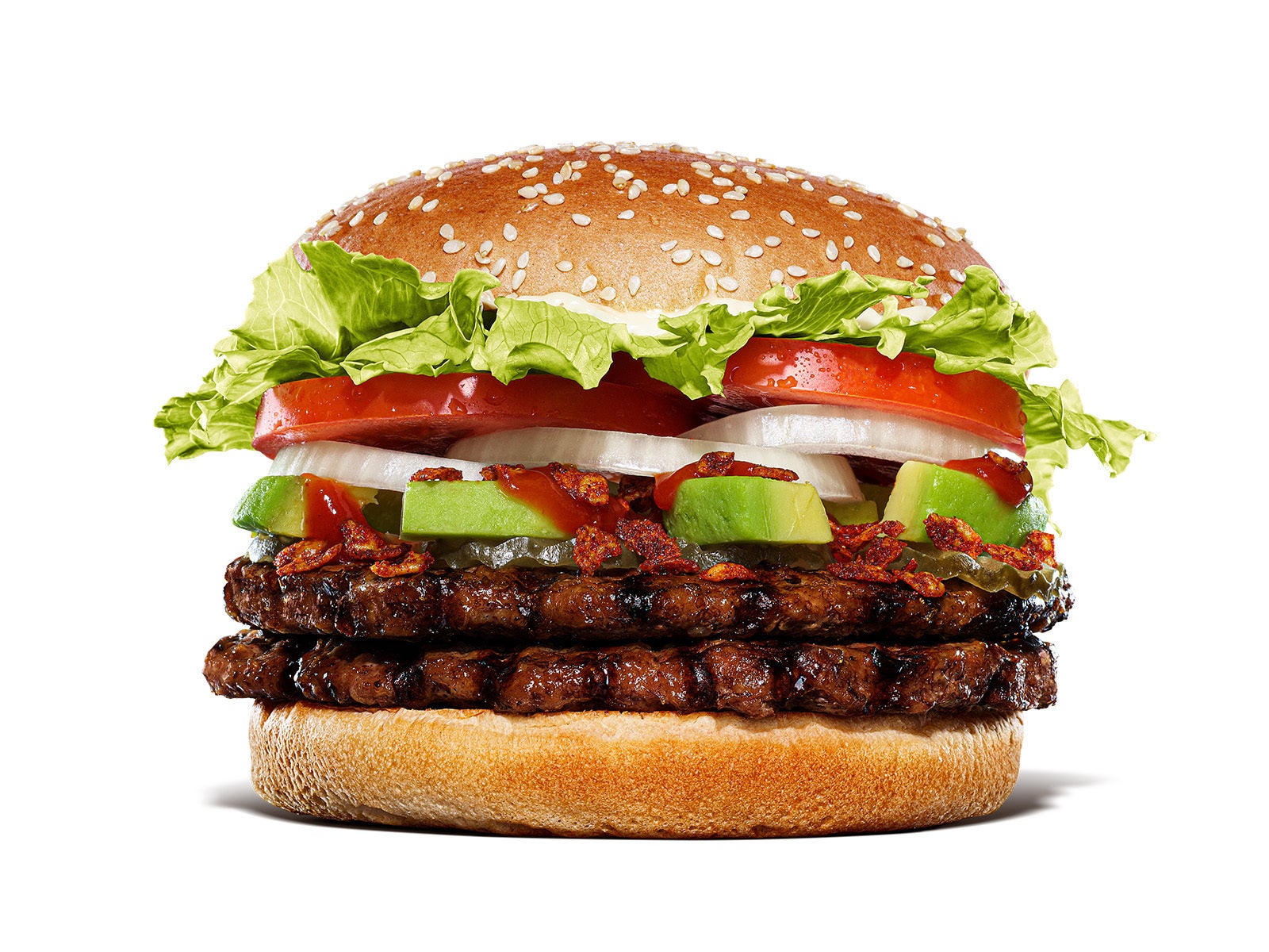 『ダブルメキシカン アボカドワッパー® 』は、直火焼きの100%ビーフパティを2枚重ね、クリーミーでリッチな味わいのアボカド、フレッシュなレタス、トマト、オニオンの豊富な野菜、ピクルスを重ね、9種のスパイスを使用したピリ辛メキシカンフレークで仕上げました。ほど良い辛さがボリューム満点の直火焼きビーフ2枚とアボカドに相性抜群のワッパー® です。