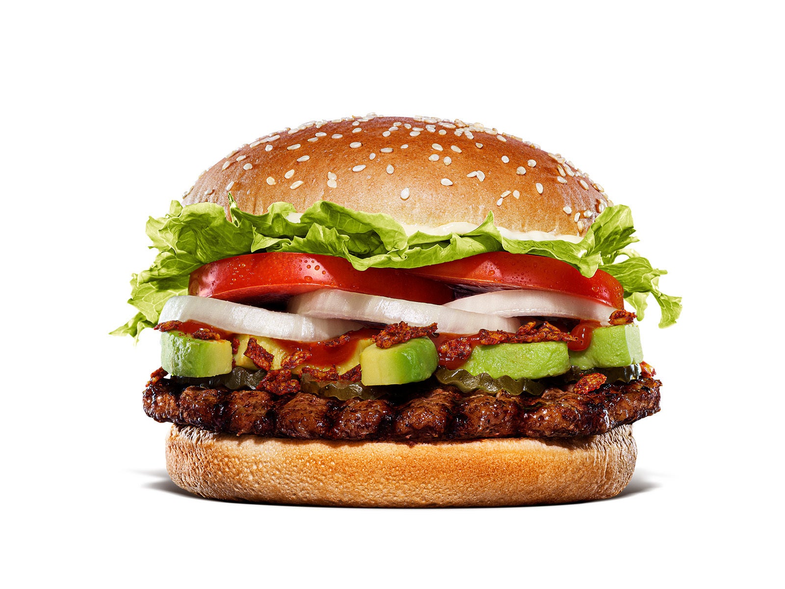 『メキシカン アボカドワッパー® 』は、直火焼きの100%ビーフパティに、クリーミーでリッチな味わいのアボカド、フレッシュなレタス、トマト、オニオンの豊富な野菜、ピクルスを重ね、9種のスパイスを使用したピリ辛メキシカンフレークで仕上げた、直火焼きビーフとアボカドのおいしさをシンプルに楽しむバーガーです。