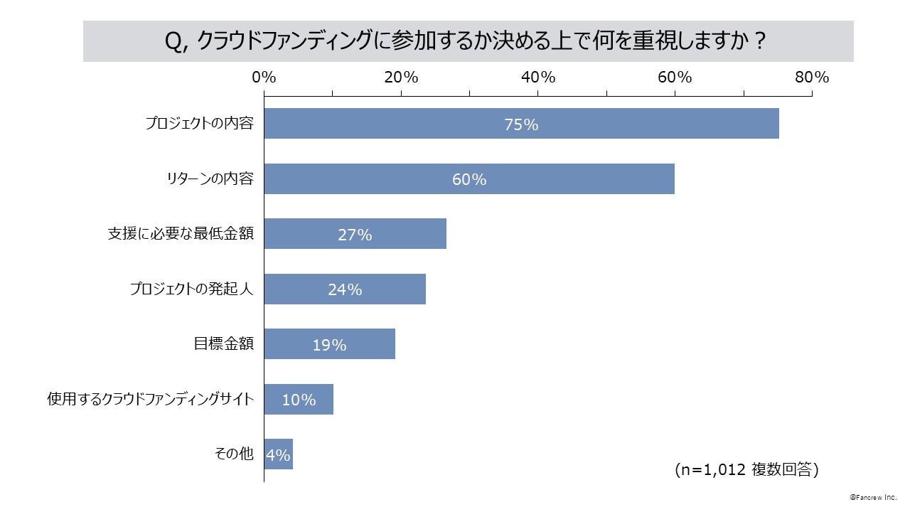 クラウドファンディングへの参加を決める際は「プロジェクトの内容」を重視75%