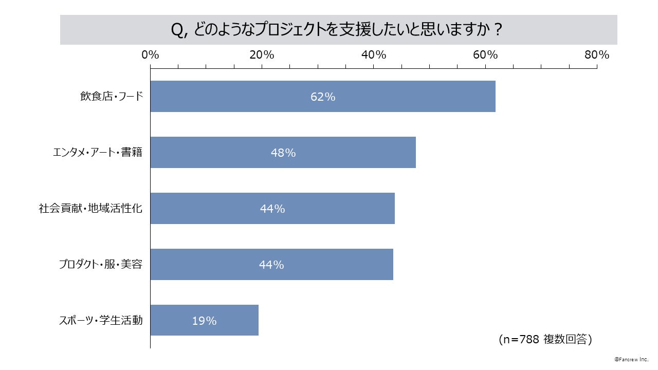 賛同するプロジェクトがあれば、クラウドファンディングに参加したい77%、支援したいのは「飲食店・フード」に関するプロジェクト