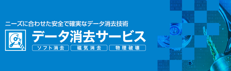 物理消去、磁気消去、ソフト消去の3形式から選択可能。またオンサイト(出張対応)も可能。