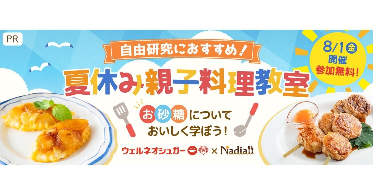 Nadia株式会社(東京都港区/代表取締役社長 葛城嘉紀 以下「Nadia」)とウェルネオシュガー株式会社(本社:東京都中央区、代表取締役社長:山本 貢司 以下「ウェルネオシュガー」)がタイアップし、夏休み時期に合わせた親子料理教室を開催いたします。