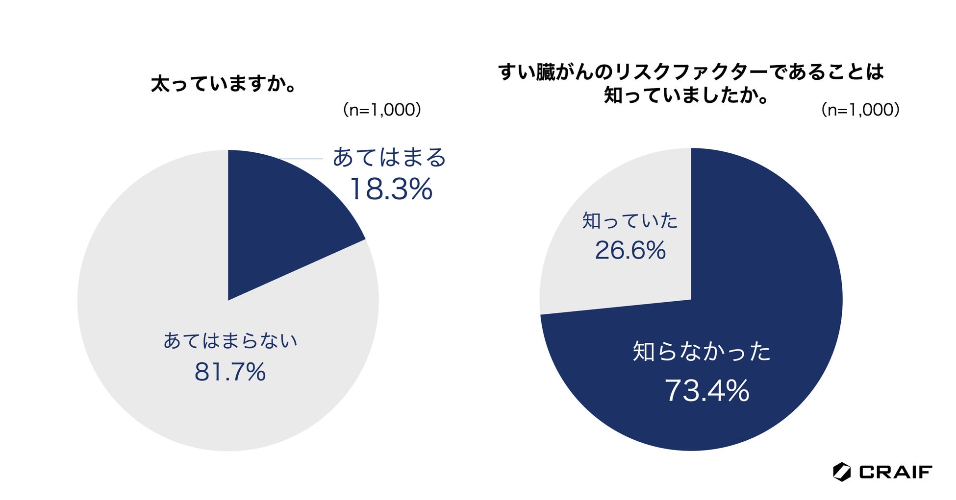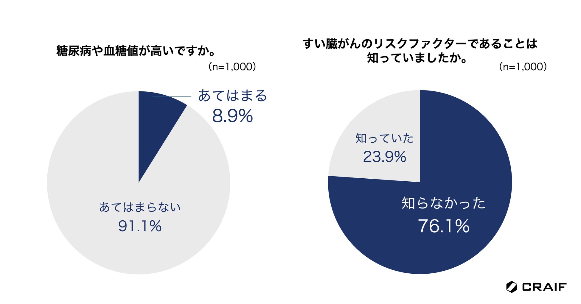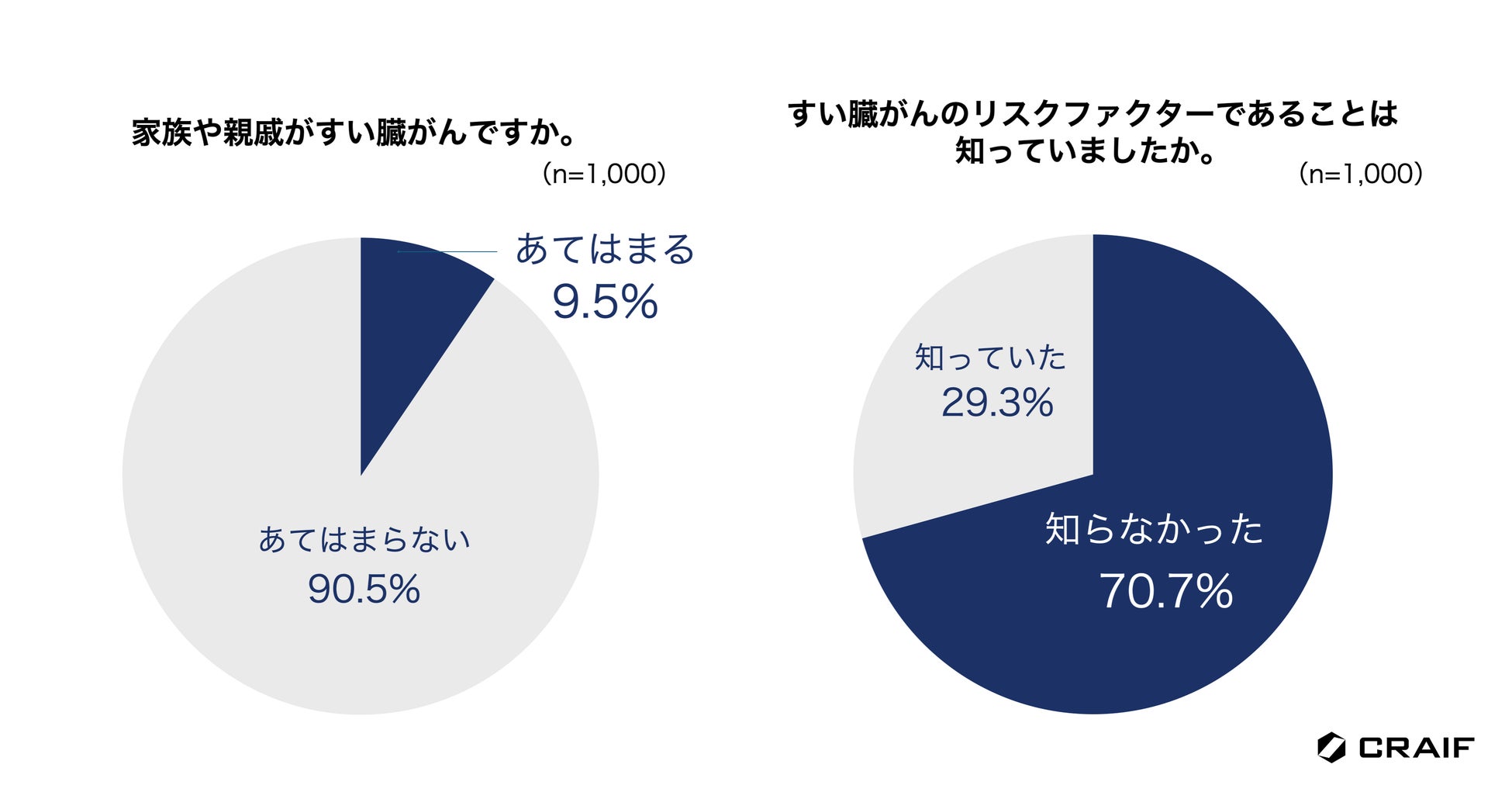 日本では高齢化が進み、2人に1人ががんに罹患する時代といわれています。この現実を前に、私たち一人一人が意識的にがん対策に取り組むことが重要になってきます。がんは早期に発見すれば、多くの場合予後が向上します。そのため、がん検診を定期的に受診することが大切です。今回の調査結果から、すい臓がんは怖いがん種の1位で、早期発見が難しく、生存率が低いことが知られていることがわかりました。一方で、「気をつけるべきリスクファクター」や「早期発見の重要性」「早期発見の難易度の高さ」はまだまだ浸透していない現状が明らかになりました。すい臓がんは年々増え続けている数少ないがん種の一つで、すい臓がんの早期発見・早期治療を目指すためには、まずはすい臓がんを知ってもらうための啓発活動を継続的に実施していくことが大切だと考えます。Craifは、すい臓がんを含む最大7種類のがん種のリスクを尿やだ液で評価できる検査「マイシグナルシリーズ」の普及を通して、一人でも多くの方々にがんに向き合う「きっかけ」を作り、予防や早期発見に積極的に取り組む具体的な行動を促していきたいと考えます。我々はこれからもがん検診やがんに対する正しい知識の普及など、積極的に啓発活動を続けてまいります。