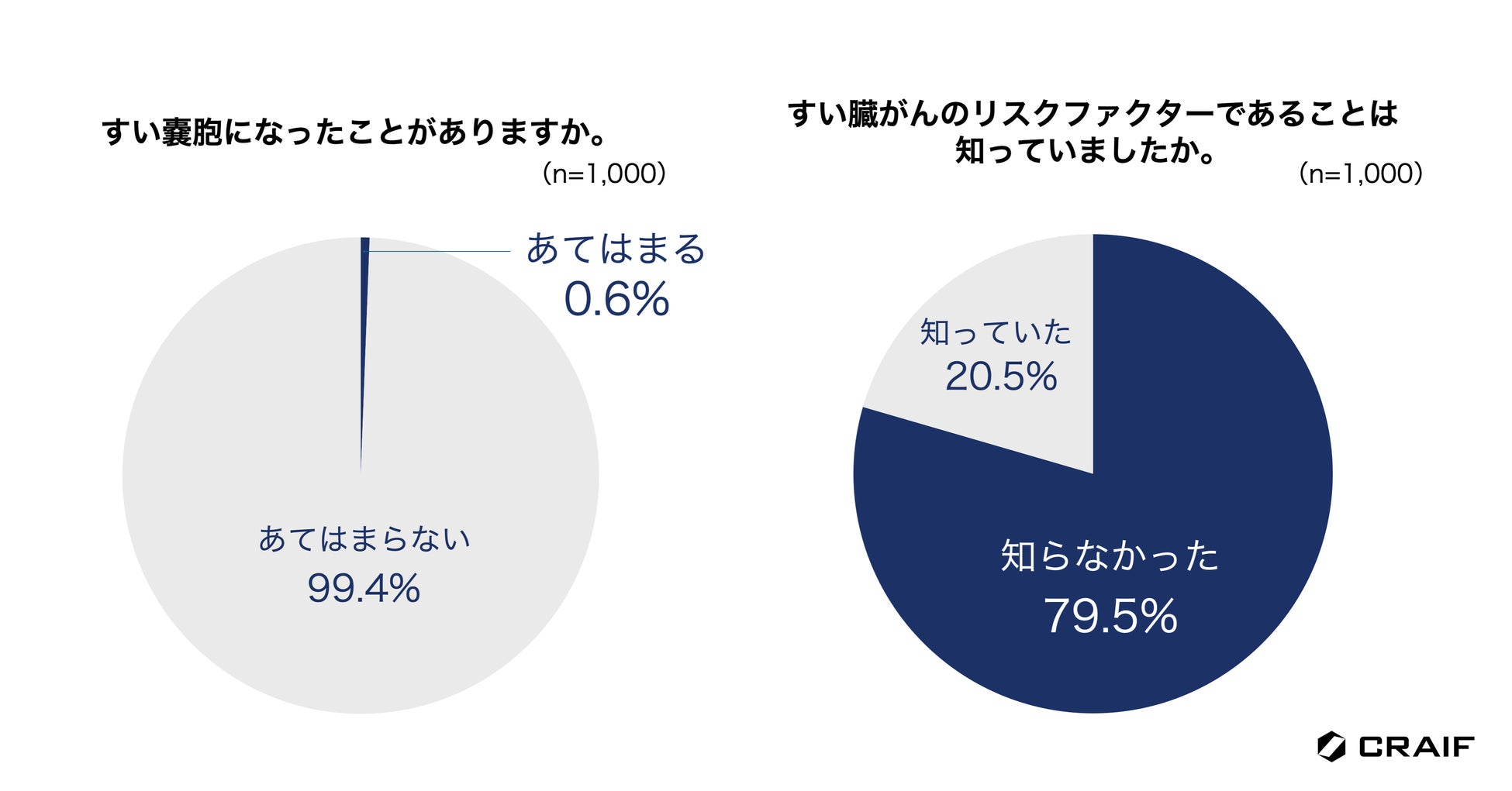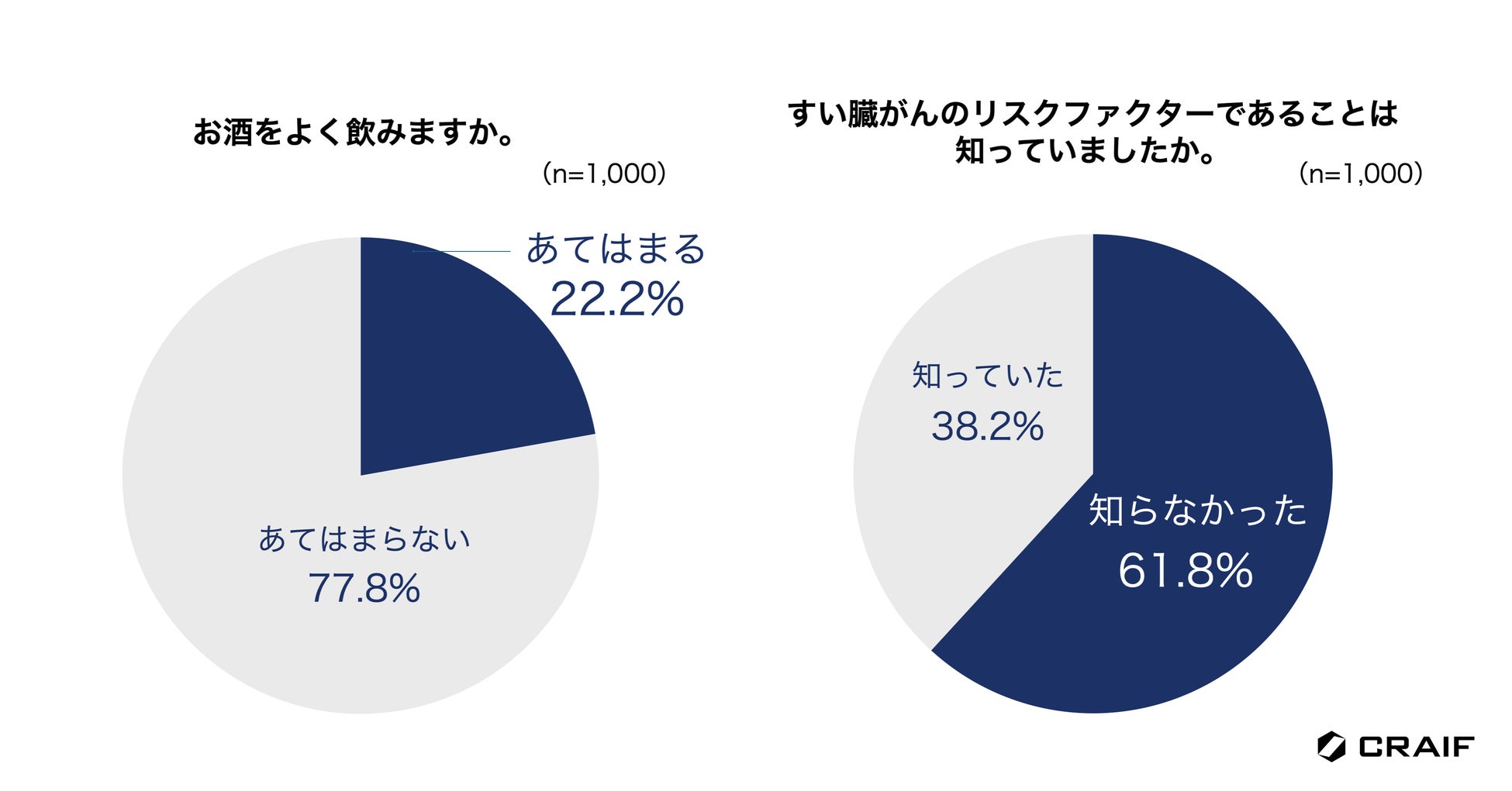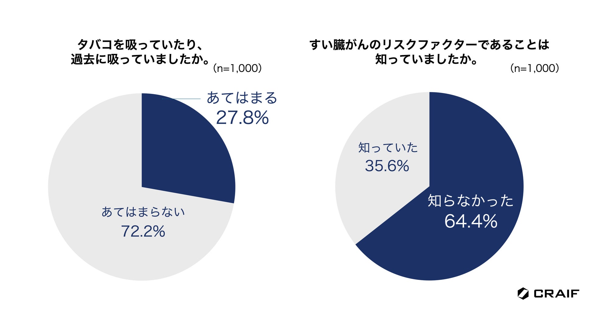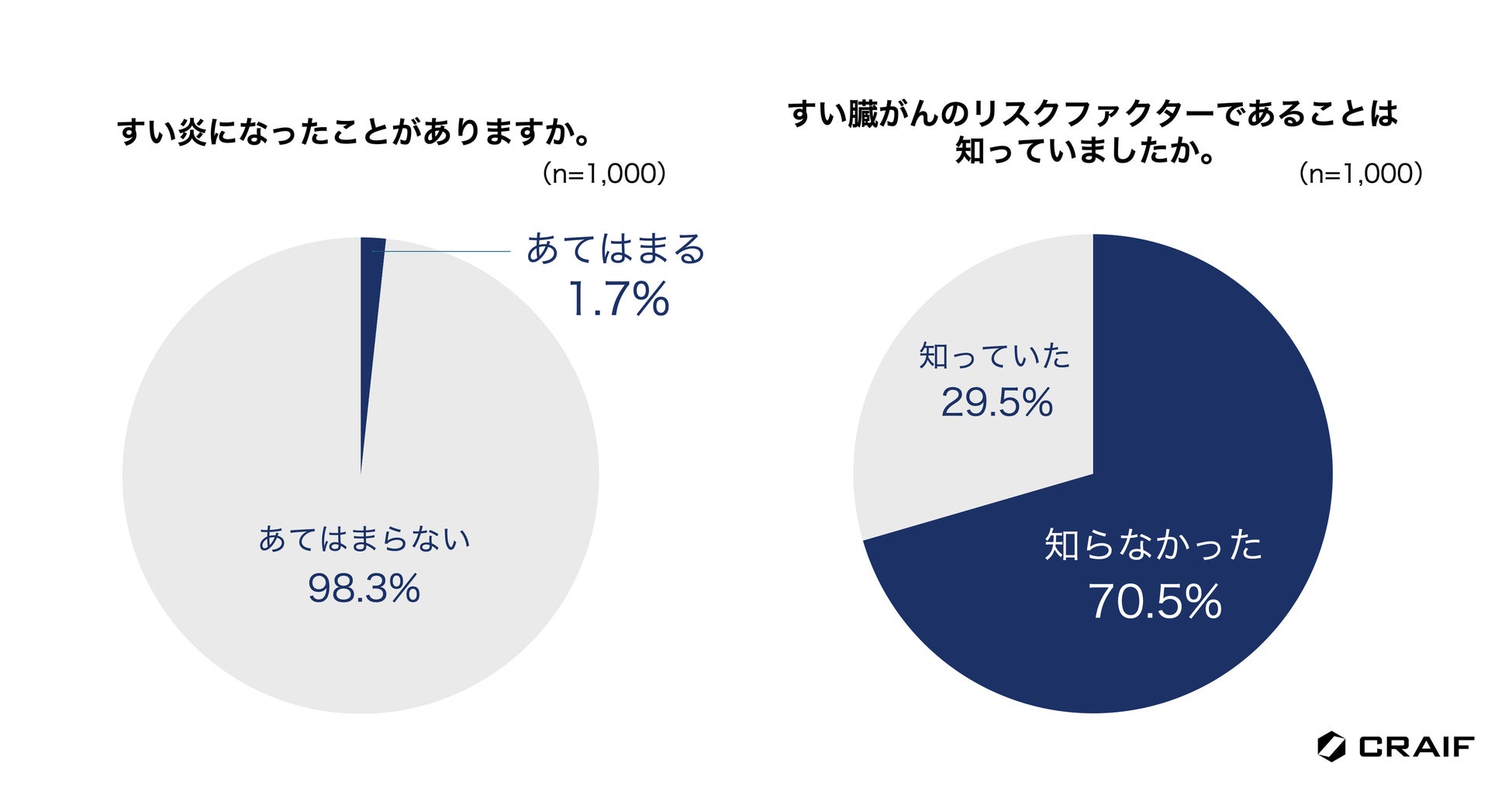 日本では高齢化が進み、2人に1人ががんに罹患する時代といわれています。この現実を前に、私たち一人一人が意識的にがん対策に取り組むことが重要になってきます。がんは早期に発見すれば、多くの場合予後が向上します。そのため、がん検診を定期的に受診することが大切です。今回の調査結果から、すい臓がんは怖いがん種の1位で、早期発見が難しく、生存率が低いことが知られていることがわかりました。一方で、「気をつけるべきリスクファクター」や「早期発見の重要性」「早期発見の難易度の高さ」はまだまだ浸透していない現状が明らかになりました。すい臓がんは年々増え続けている数少ないがん種の一つで、すい臓がんの早期発見・早期治療を目指すためには、まずはすい臓がんを知ってもらうための啓発活動を継続的に実施していくことが大切だと考えます。Craifは、すい臓がんを含む最大7種類のがん種のリスクを尿やだ液で評価できる検査「マイシグナルシリーズ」の普及を通して、一人でも多くの方々にがんに向き合う「きっかけ」を作り、予防や早期発見に積極的に取り組む具体的な行動を促していきたいと考えます。我々はこれからもがん検診やがんに対する正しい知識の普及など、積極的に啓発活動を続けてまいります。