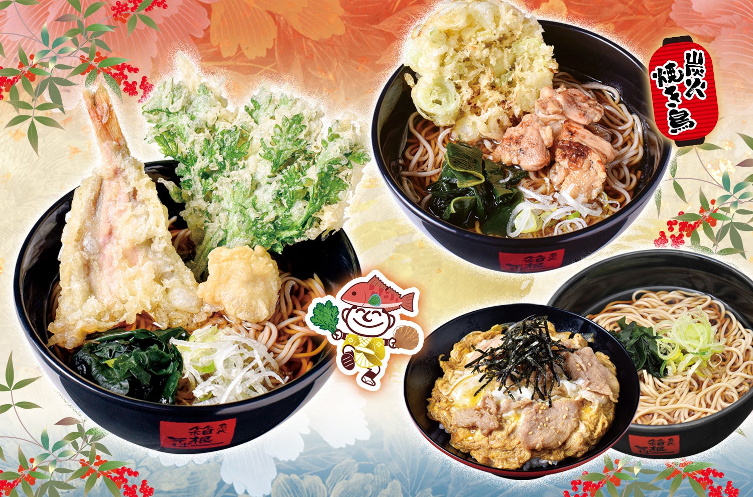 ※「ホウボウ天とホタテ天・春菊天(そば・うどん)」は名代箱根そば全店で販売いたします。「炭火香る鶏もも肉とねぎ天(そば・うどん)」および「豚玉丼セット(そば・うどん)」は、取り扱いのない店舗がございます。