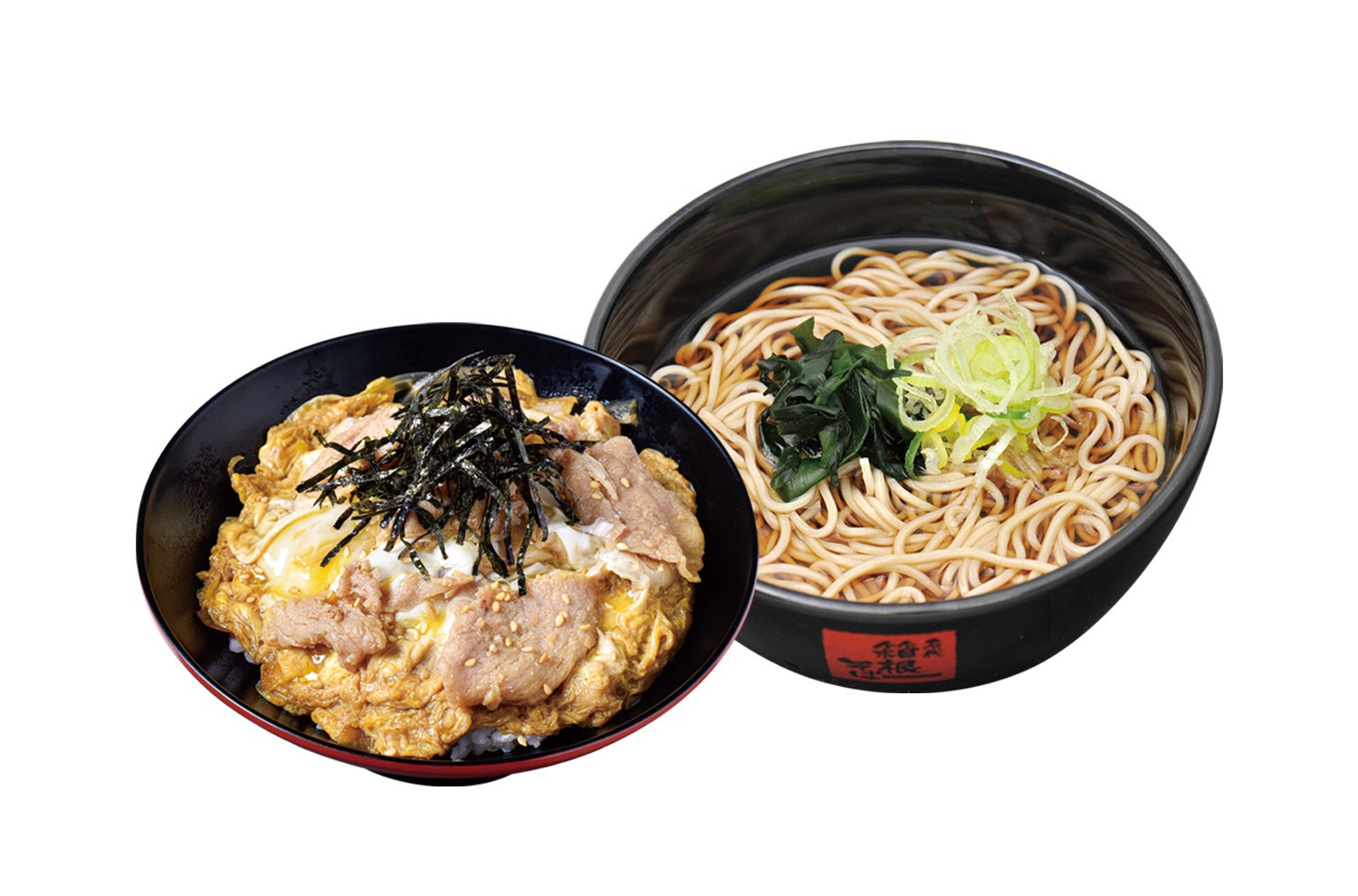 豚肉を玉子でとじた、食べ応えのある豚玉丼です。かけそばとセットになっているので、がっつりとお召し上がりいただきたい時におすすめです。