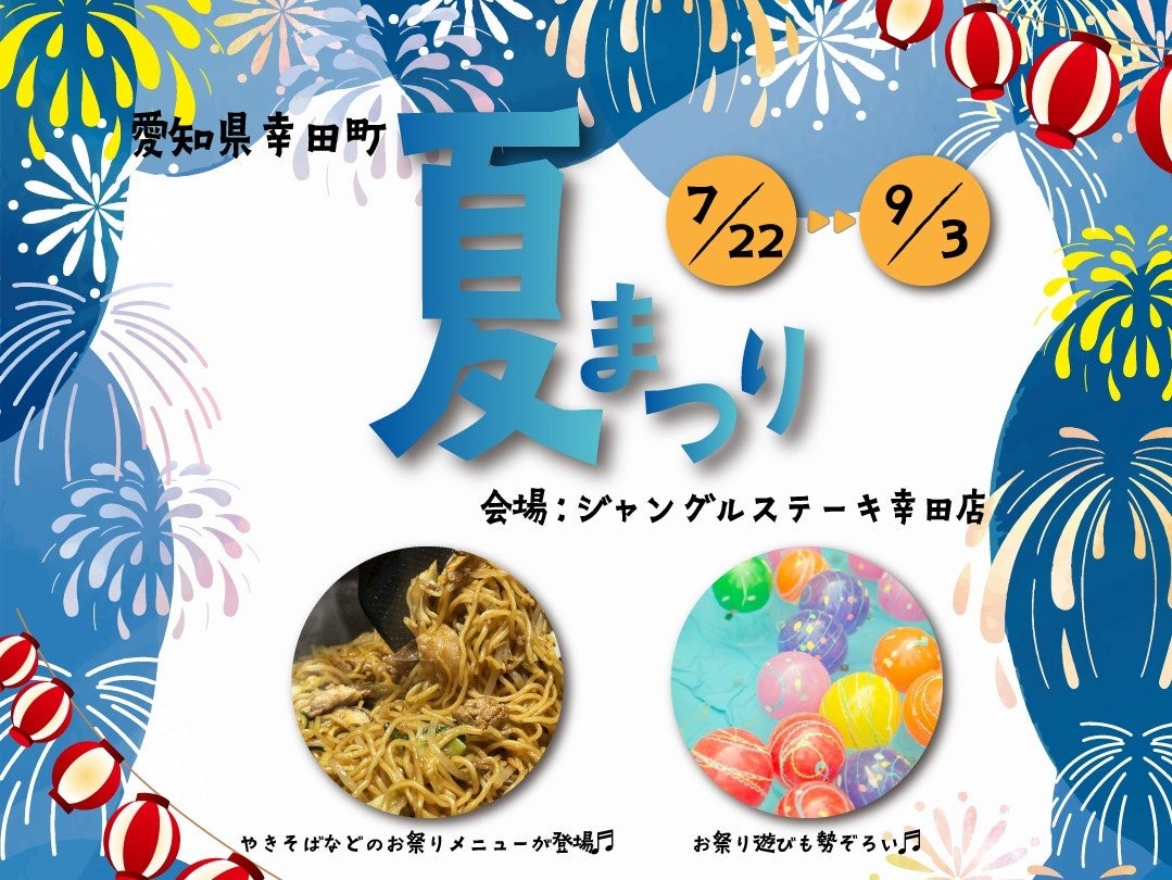 夏祭りメニューの鉄板で作る焼きそば、昔懐かしいラムネ、縁日メニューの定番チョコバナナなどお食事でもご家族みんなで楽しめるメニューとなっております。