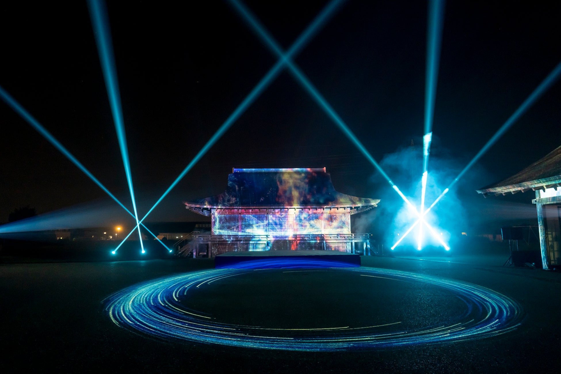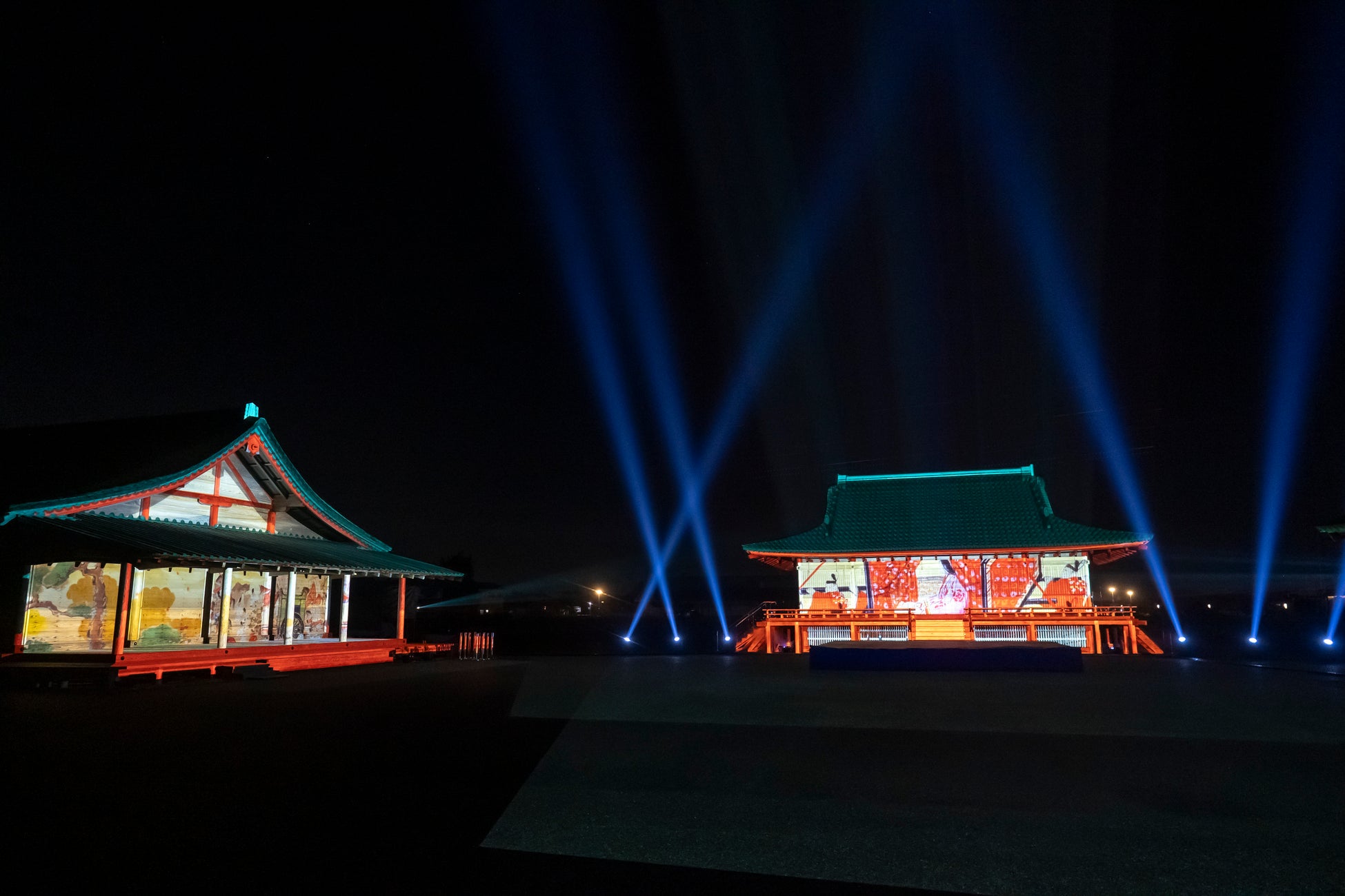 国史跡斎宮跡にある「さいくう平安の杜」の正殿・東脇殿・西脇殿に「斎王群行絵巻」「源氏物語絵巻」「十二単」など斎宮ゆかりの文化芸術をモチーフとした荘厳なプロジェクションマッピング映像を投影。