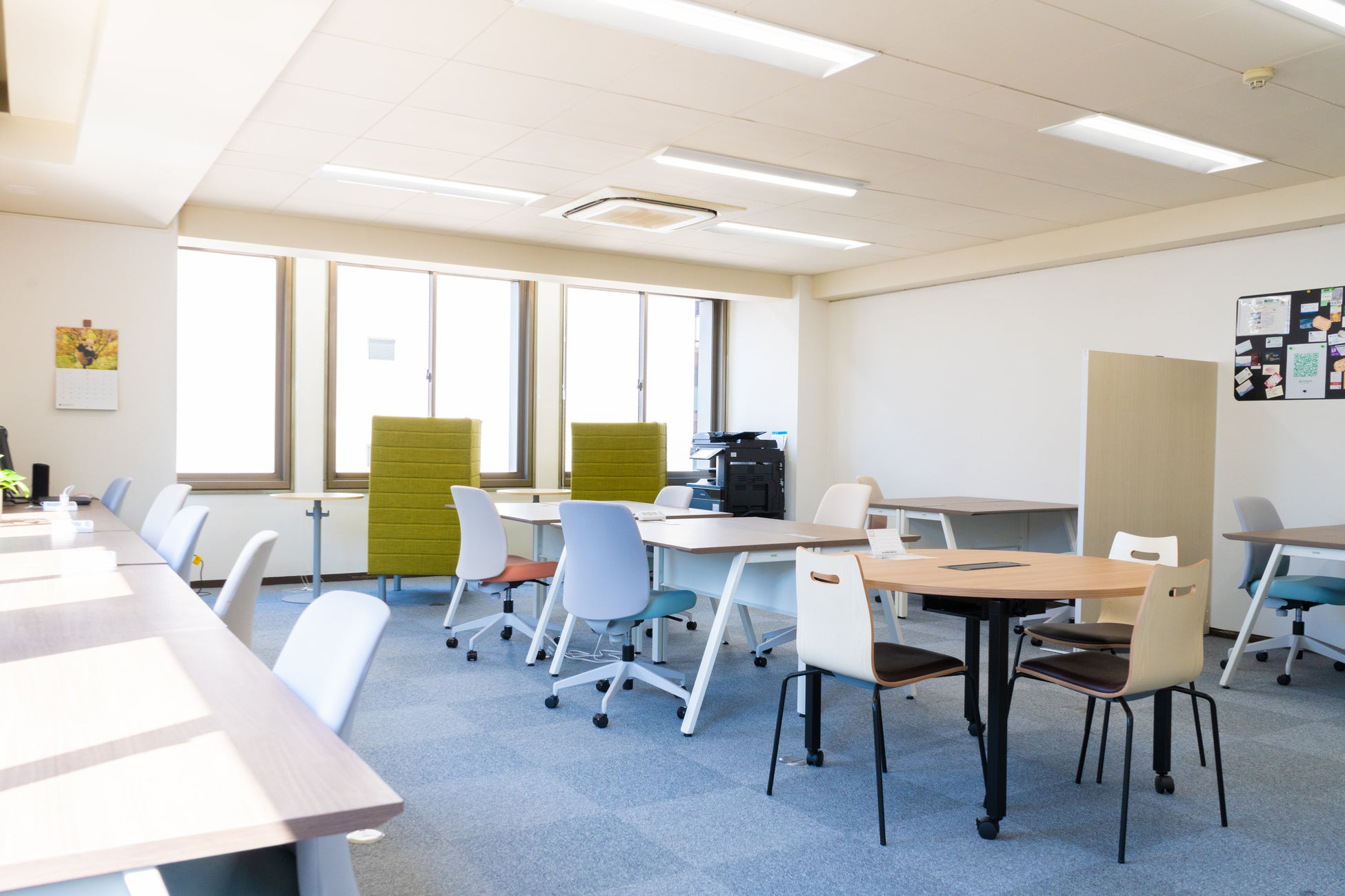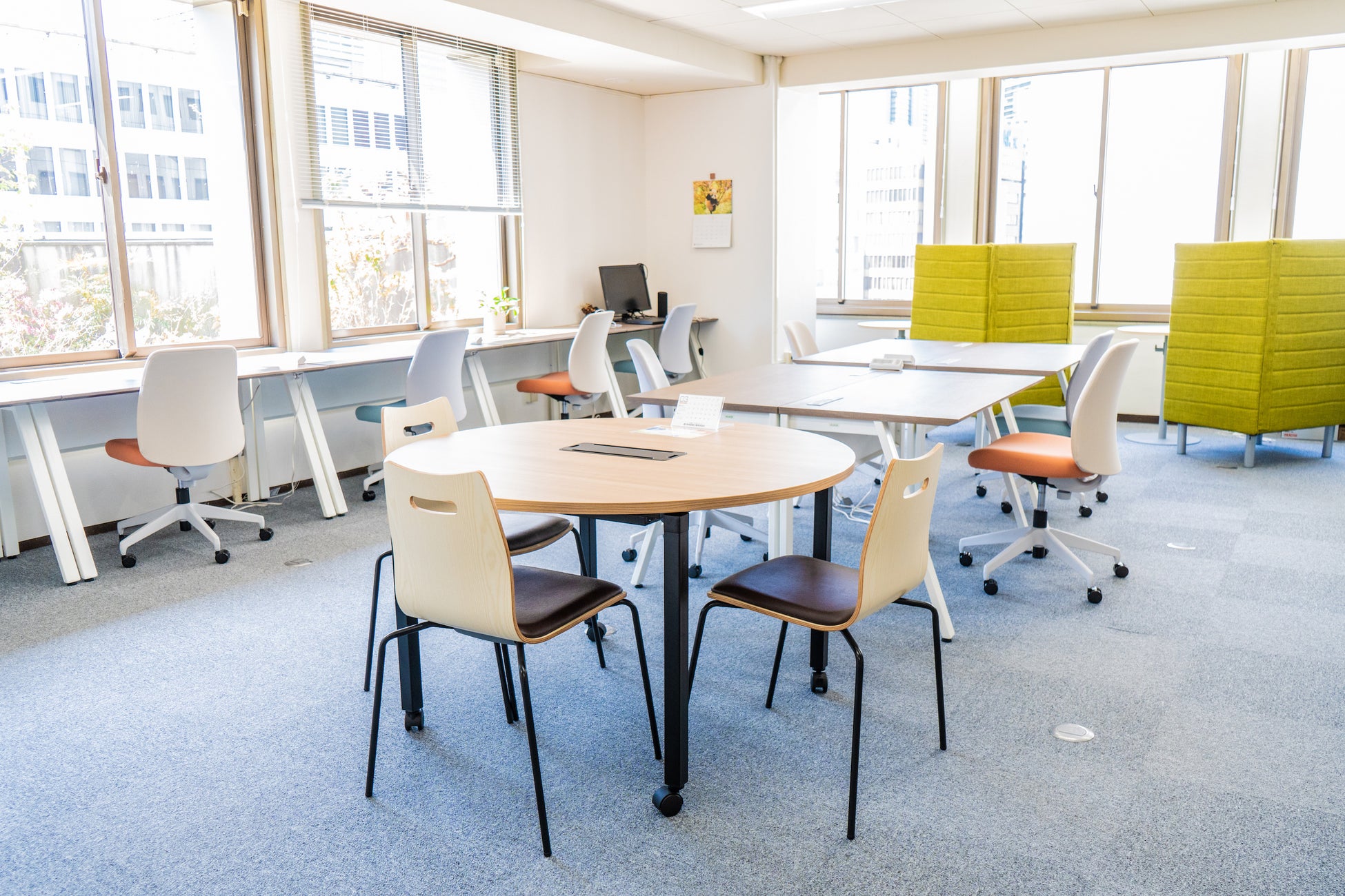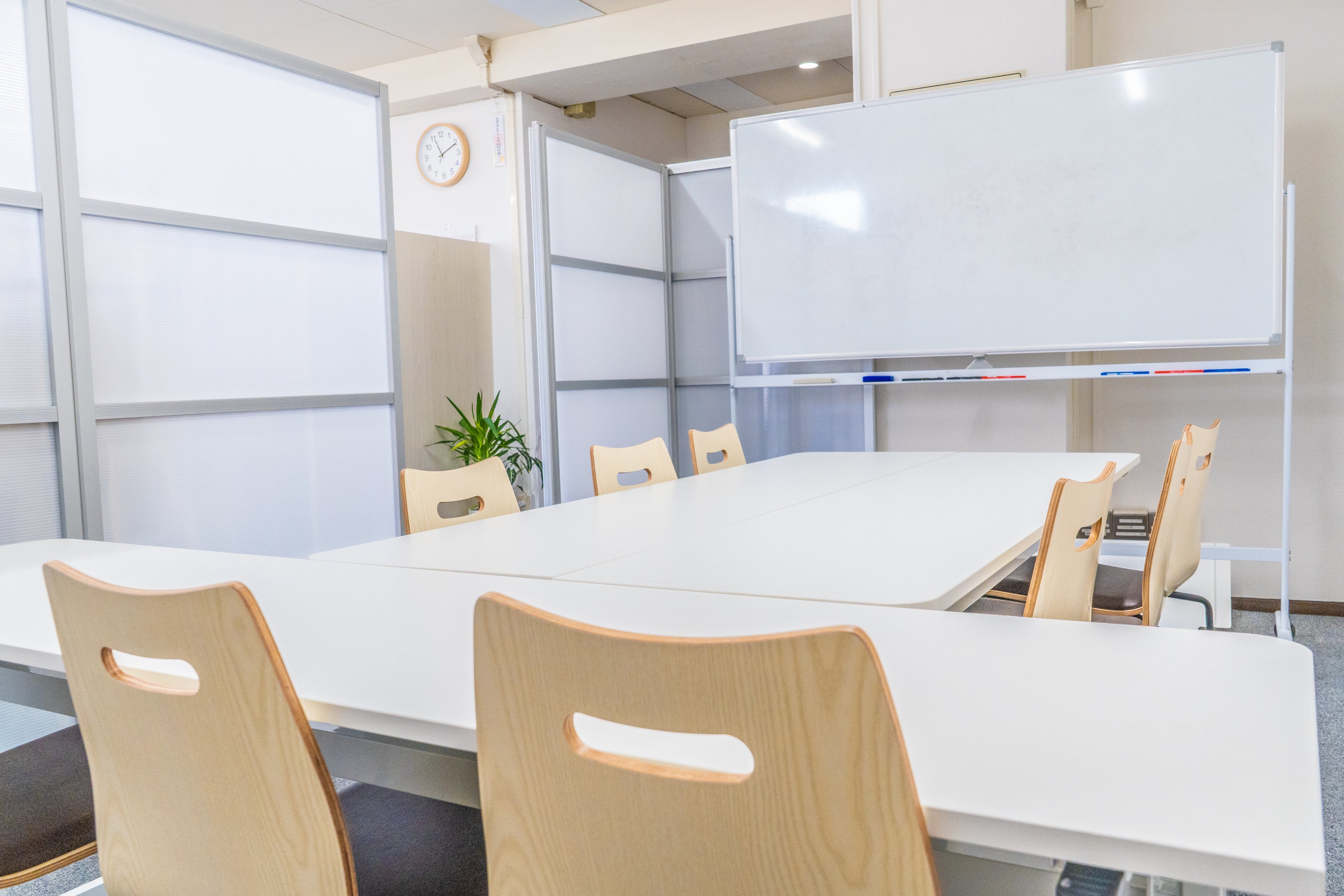 パーテーションで区切られた会議室は、最大10名まで利用可能です。ホワイトボード・プロジェクターを使用した会議のほか、交流会やセミナーなど、貸切イベントの会場としてもご利用いただけます。