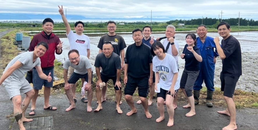 「伍縁」という名前には、五つの縁-地元の米生産者、蔵元、酒屋、ホテル、そしてお客様へと、人と人とのご縁が繋がるという意味が込められています。2024年には、滋賀県高島市に開業した会員制リゾートホテル「サンクチュアリコート琵琶湖」のスタッフもこの取り組みに共鳴し、田植えに参加しました。この田植えを通じて、地域の生物多様性の維持にも寄与できると考えています。