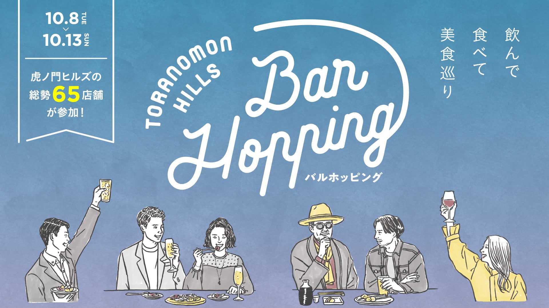 タイトル : 「Toranomon Hills Bar Hopping~虎ノ門ヒルズの総勢 65 店舗が参加!飲んで食べて美食巡り~」※読み方は「バルホッピング」