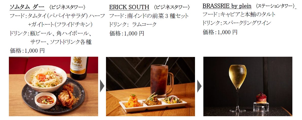 本イベントでは、お肉屋さん直営のグリル料理×厳選日替わりクラフトビール、フレンチショートコース×スパークリング・白・赤ワインの少量3杯セット、“呑めるうなぎ料理店”の〆のうなぎ茶漬け×日本酒など、全77種類の多彩なセットメニューを、1,000円、2,000円、3,000円と手頃な価格でご用意。仕事帰りにサクッと飲み歩きや、贅沢気分を味わえる女子会、週末昼からのプレミアムなハシゴ酒など、様々なシーンでご利用いただけます。