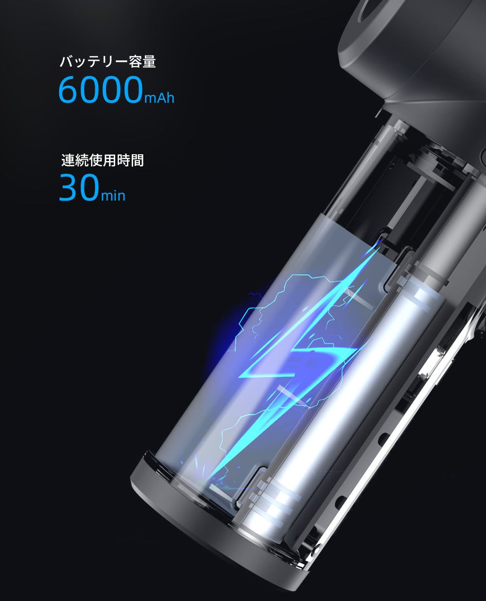 3. 6000mAh大容量リチウムバッテリーが内蔵され、3時間のフル充電で最大30分連続稼働可能。