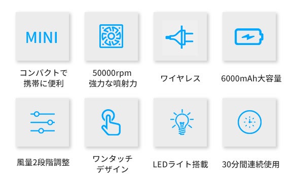 【風力2段階/6000mAh大容量/ 30分連続使用/7種類のノズル付属】