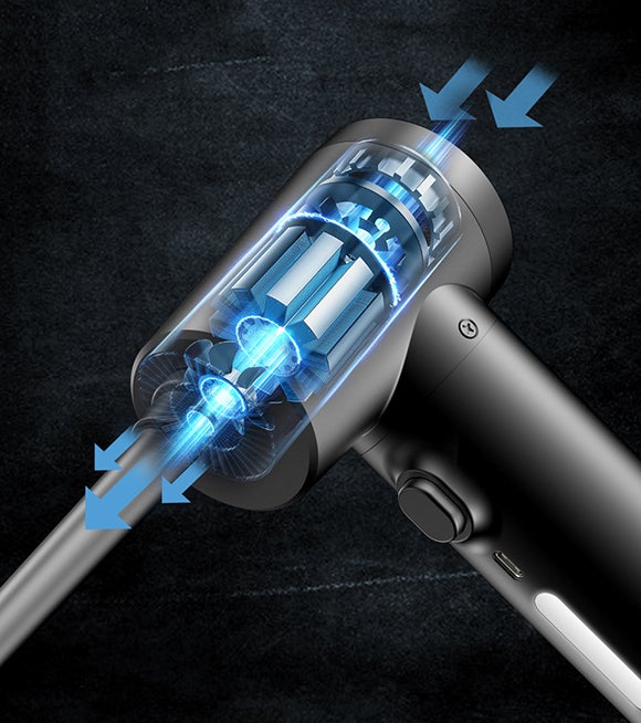 エアダスター・空気入れ・空気抜き・ハンディクリーナー・照明「Astarian」1台5役!50000rpmの噴射力と8000Paの吸引力で隅々まできれいに掃除!