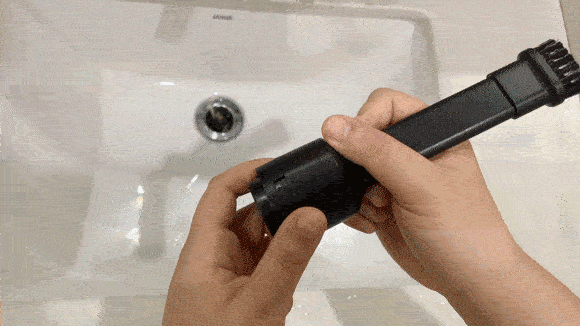 吸引式のハンディクリーナーとして使用する場合、ブラシノズルに搭載するフィルターを取り出して水洗いするだけでお手入れが完了します。