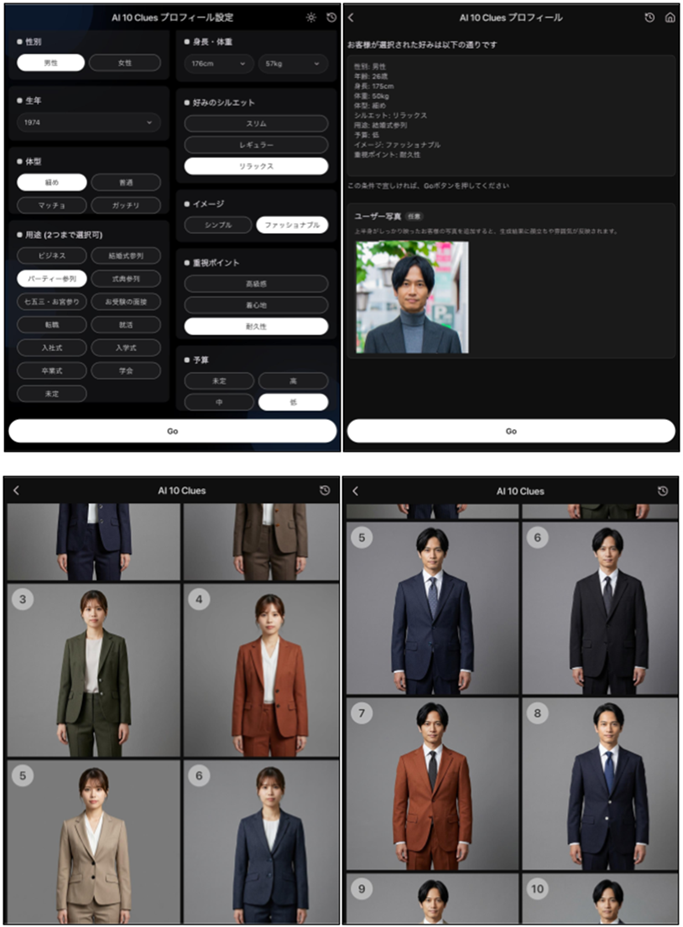 ■“オーダースーツは買う前に選び疲れる”を解消するアプリ「AI 10 Clues」