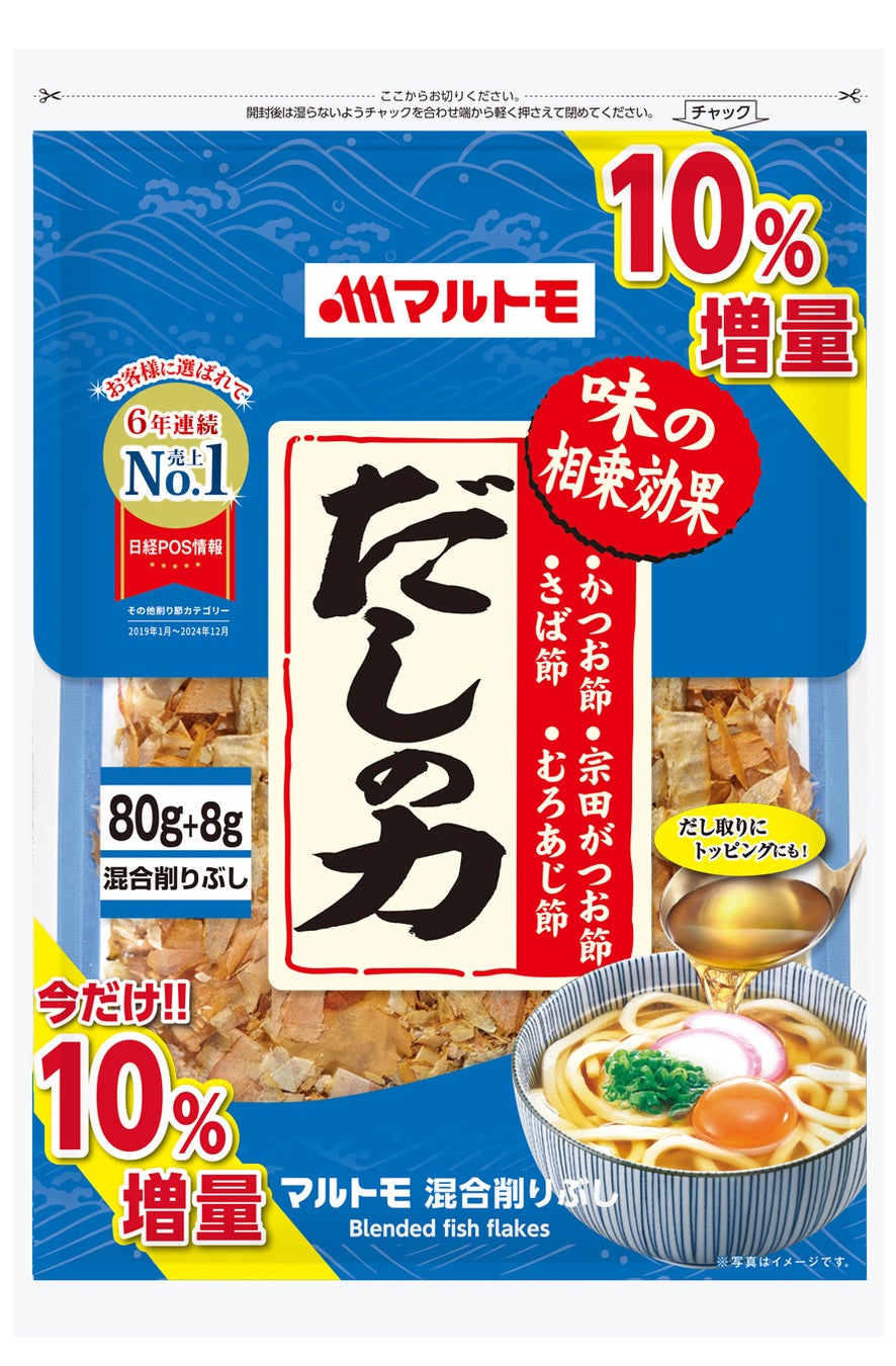 かつお節・だしと、海洋資源を通じて健康と食文化の発展に貢献するマルトモ株式会社(社長:明関眸 本社:愛媛県伊予市)は、日経POSセレクションにて6年連続売上No.1商品である「だしの力 80g」について10%増量キャンペーンを実施いたします。