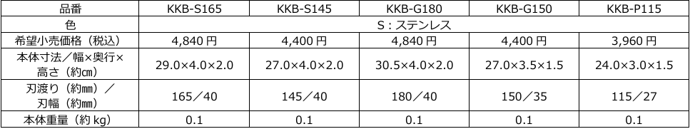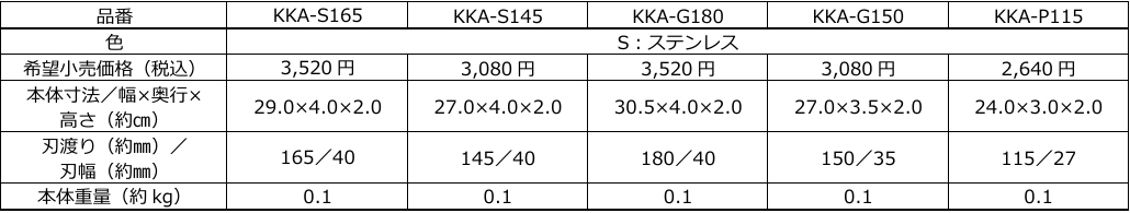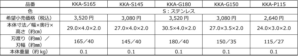 『サーモス ファインエッジ(KKA-S165/S145/G180/G150/P115)』 仕様一覧