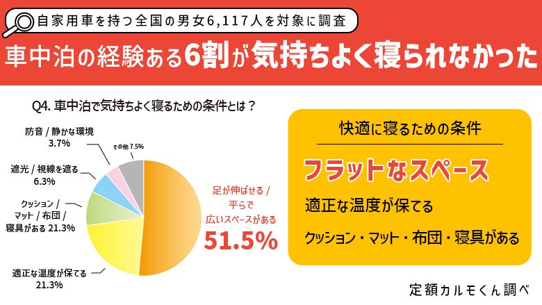 快適に寝るための条件は、「フラットなスペース」が過半数