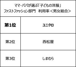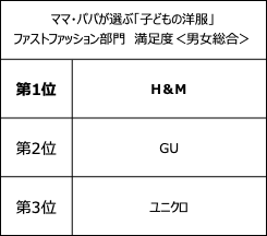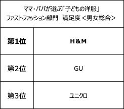 ◆ファストファッション部門 人気ランキング 利用率1位は「ユニクロ」、満足度1位は「H&M」