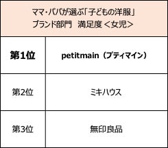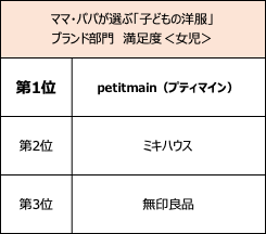 ◆ブランド部門 人気ランキング 満足度1位は「プティマイン」ほか