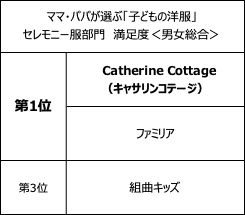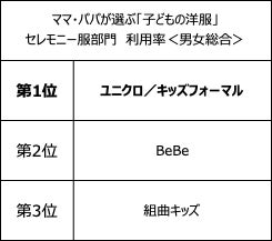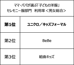◆セレモニー服部門 人気ランキング 利用率1位は「ユニクロ」、満足度1位は「キャサリンコテージ」