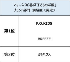 プティマイン利用者からは「洋服は全てプティマイン。子ども自身が気に入っている」(30代・岐阜県)。F.O.KIDS利用者からは「ズボンのサイズ感が子どもに合い、気に入っている」(40代・愛知県)、BREEZE利用者からは「長持ちするし、デザインがかわいい」(40代・神奈川県)といったお気に入りポイントが寄せられました。