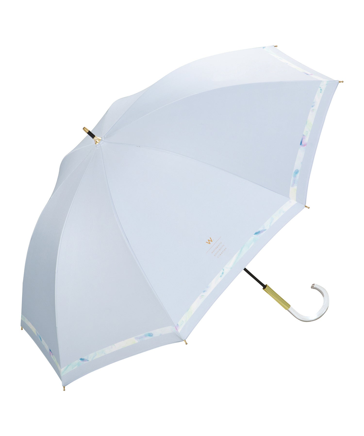 傘の縁に水彩タッチのラインをあしらい、シンプルながらも洗練されたデザインに仕上げた「遮光ニュアンスライン」。夏らしい透明な持ち手やゴールドのパーツが高級感を演出します。